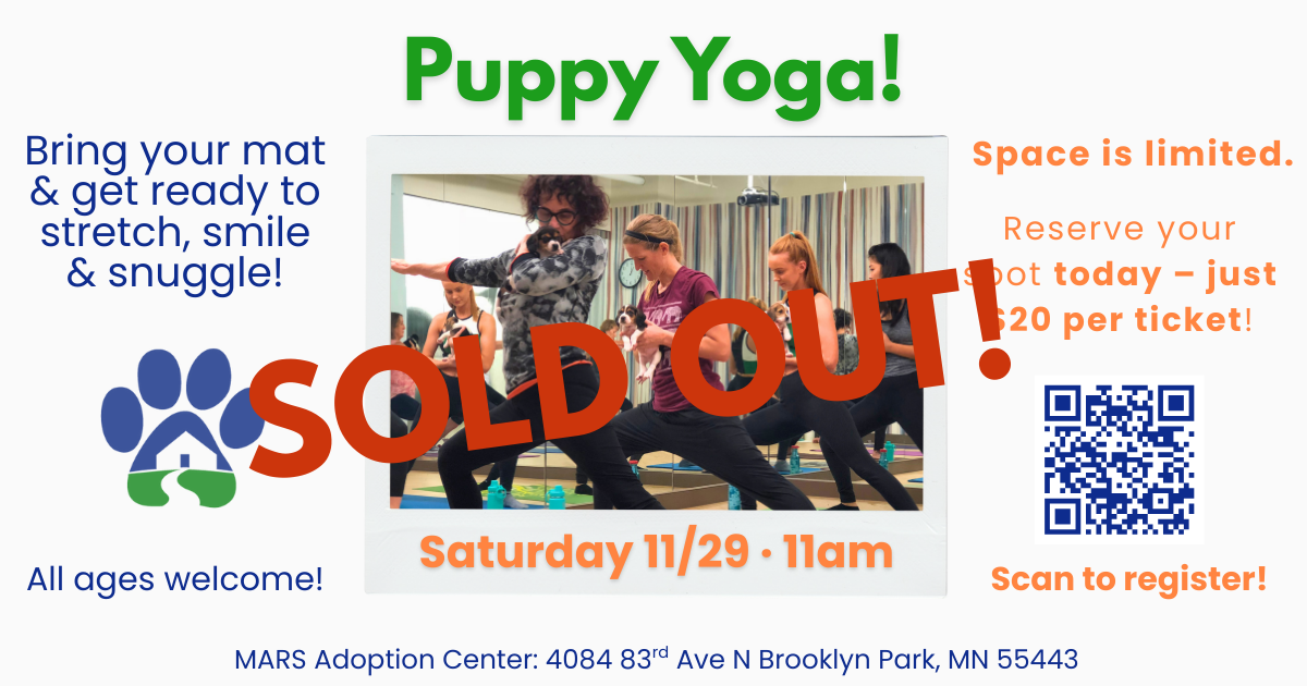 Join us for Puppy Yoga at MARS — a fun, beginner-friendly class where you’ll stretch, smile, and relax alongside adorable rescue puppies.